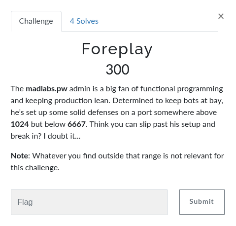 $ nmap -Pn -p1024-6667 madlabs.pw -v