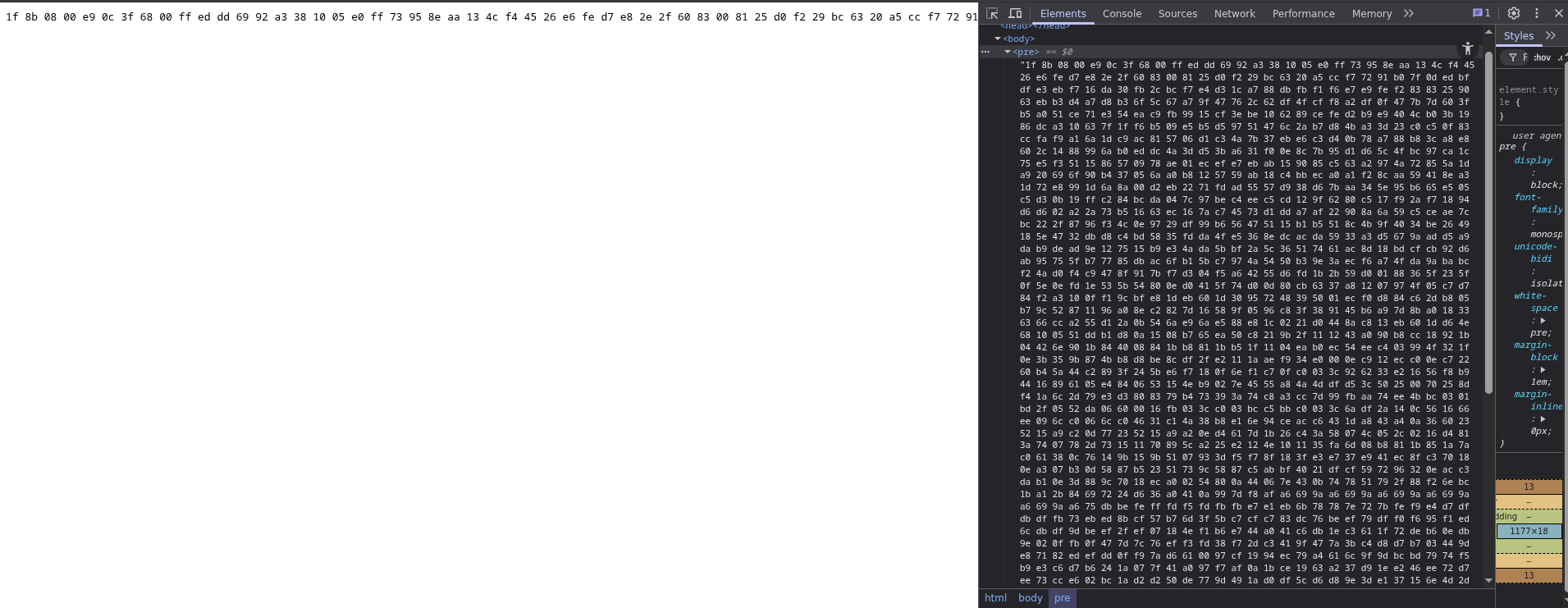 The challenge gave us an URL, which redirected to a webserver spitting out a sequence of hex values.