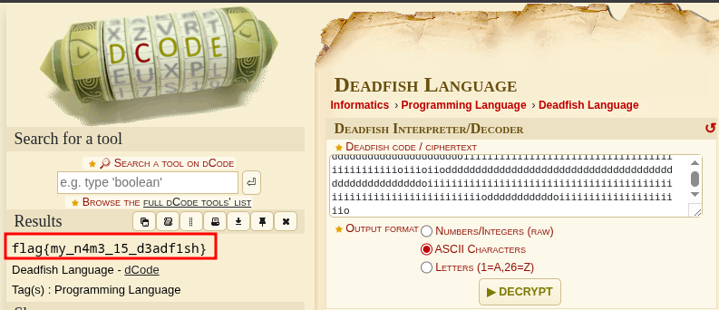 , so I threw it into an online decoder—and that finally revealed the flag.